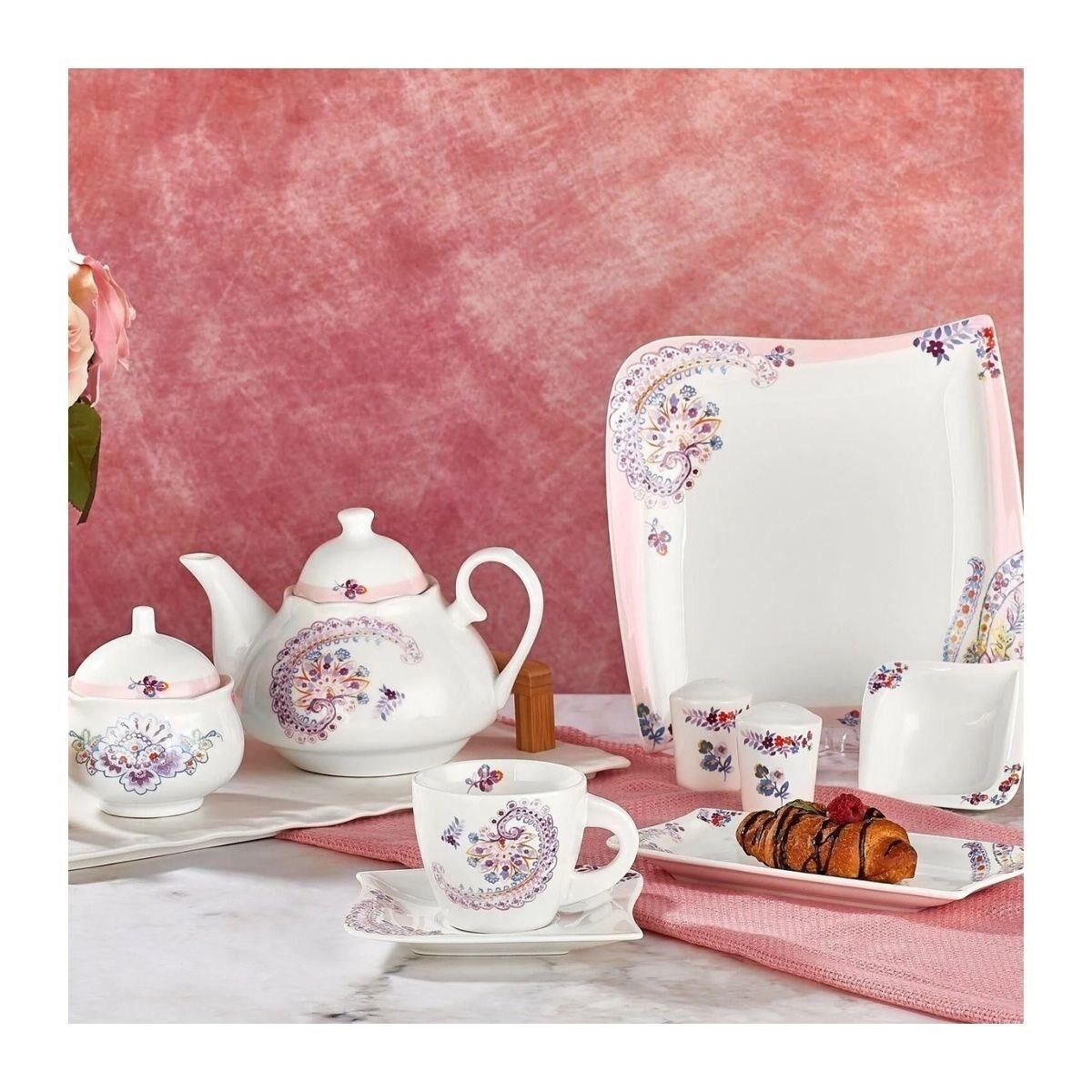 Her İhtiyaca Uygun: 30 parçadan oluşan bu set, kahvaltı masanızı eksiksiz hale getirmek için tüm gerekli unsurları içerir. Tabaklardan çay fincanlarına kadar her detay özenle düşünülmüştür.