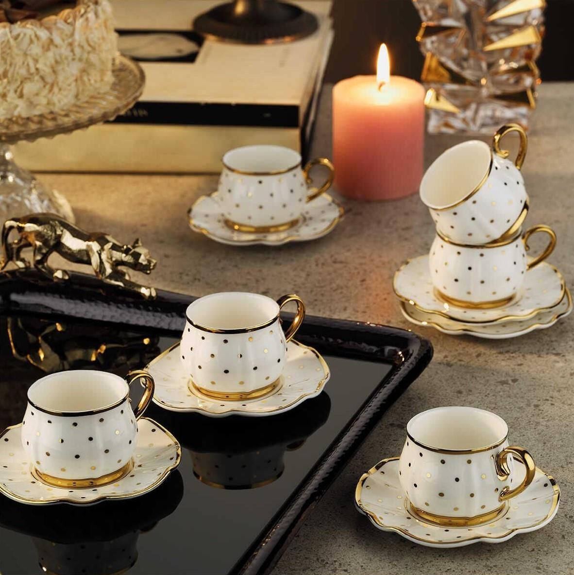 Fincan ve tabaklardan oluşan bu takım hem günlük hem de özel ikramlarınız için harika bir seçim olacak.