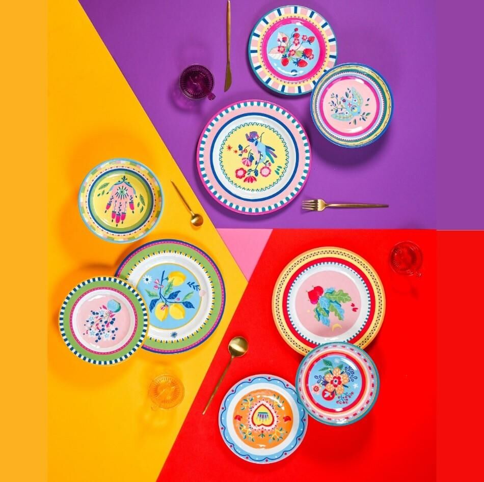 Renklerin bir kaleidoskopu, ilgi çekici semboller, gizemli yazılar ve büyüleyici çizimlerle dolu; her detayda keşfedilmeyi bekleyen görsel bir senfoni. "Mamma Mia" koleksiyonu, sadece sofranıza değil, evinizin her köşesine de canlılık katma amacıyla tasarlandı. Geleneksel el sanatlarının ustalığından çağdaş grafik tasarımların cesur hatlarına kadar çeşitli etkenlerden ilham alan bu koleksiyon, çeşitliliğe bir övgü niteliğindedir. Cesur ve karşı konulamaz renkler, her anı canlı bir deneyime dönüştürerek genç ve şenlikli bir atmosfer yaratmak için bir araya geliyor.