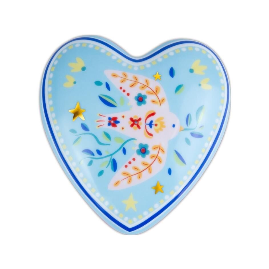 Baci Milano Mamma Mia Kuş Desenli Dekoratif Obje, 12 cm x 11,5 cm x 4 cm ölçülerinde zarif ve şık bir tasarıma sahiptir. Kalp şeklindeki bu dekoratif obje, Mamma Mia koleksiyonunun özgün kuş desenleriyle süslenmiştir. Yüksek kaliteli porselen malzemeden üretilmiş olan bu obje, ev dekorasyonunda doğallık ve zarafeti ön plana çıkarır. Kuş motiflerinin detaylı işçiliği, objeye sanatsal bir görünüm kazandırırken, herhangi bir mekana huzurlu ve doğal bir hava katar. Evinize veya ofisinize özel bir dokunuş eklemek için ideal bir dekoratif seçenektir.