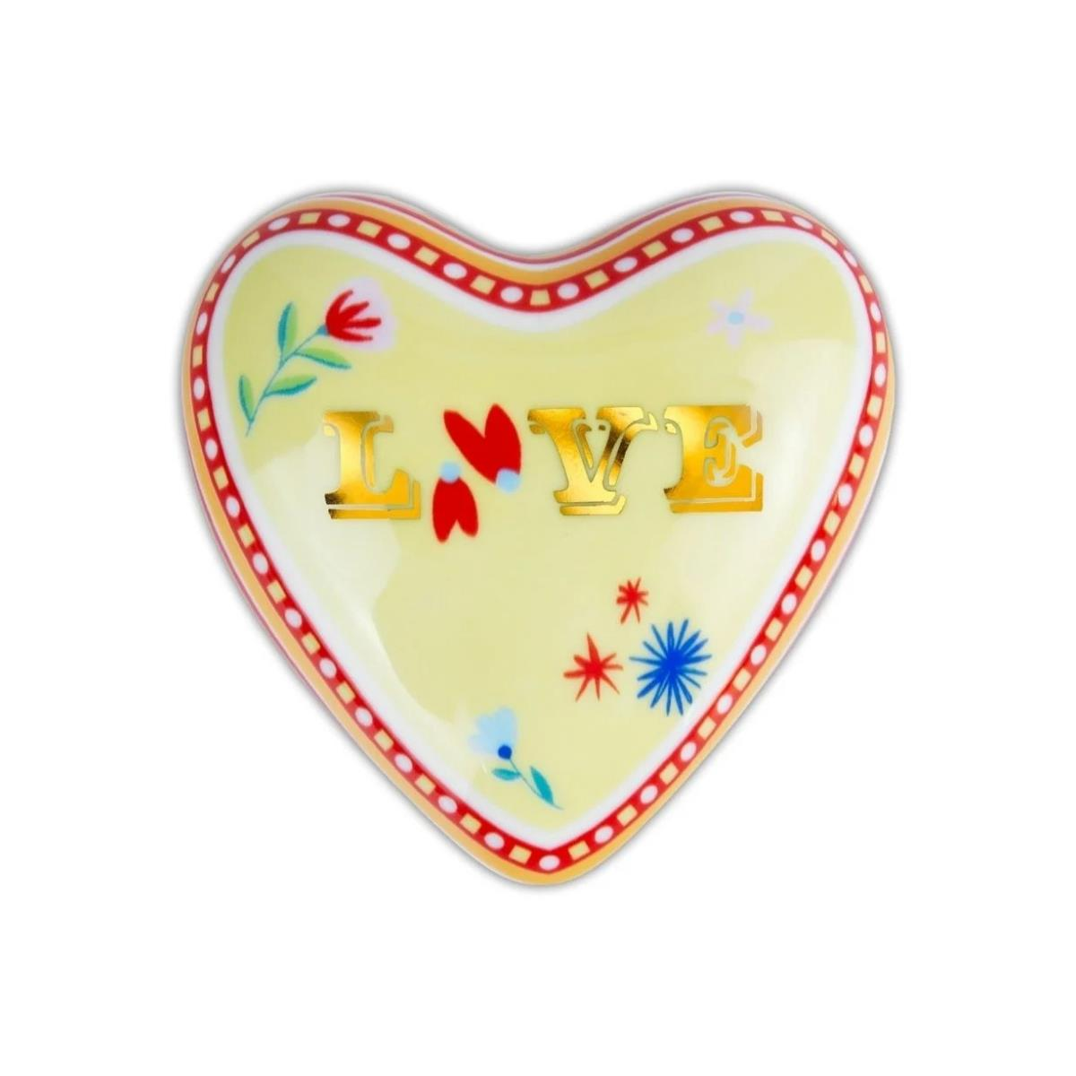 vBaci Milano Mamma Mia “Love” Yazılı Kalp Şeklinde Dekoratif Obje, 9,5 cm x 4 cm ölçülerinde zarif ve şık bir tasarıma sahiptir. Kalp şeklindeki bu dekoratif obje, Mamma Mia koleksiyonunun özgün "Love" yazısı ile süslenmiş olup, aynı zamanda kalp şeklindedir. Yüksek kaliteli porselen malzemeden üretilmiş olan bu obje, ev dekorasyonunda sevgi ve zarafeti ön plana çıkarır. "Love" yazısının estetik detayları, objeye sanatsal bir görünüm kazandırırken, herhangi bir mekana sıcak ve samimi bir hava katar. Evinize veya ofisinize duygusal ve estetik bir dokunuş eklemek için ideal bir dekoratif seçenektir.