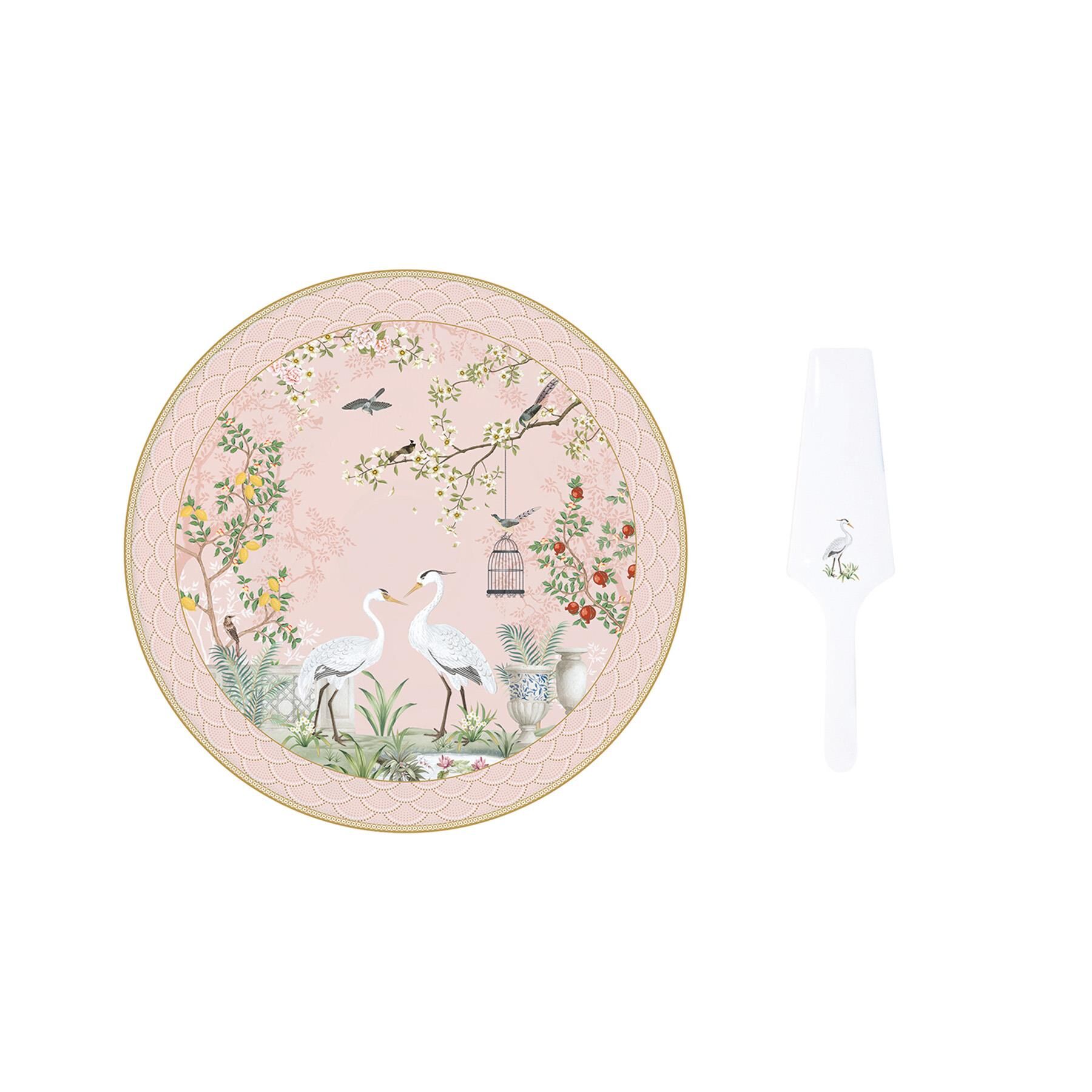 Easy Life Jardin de Reves Porselen Kek Servis Tabağı 32 cm Dilimleyicili