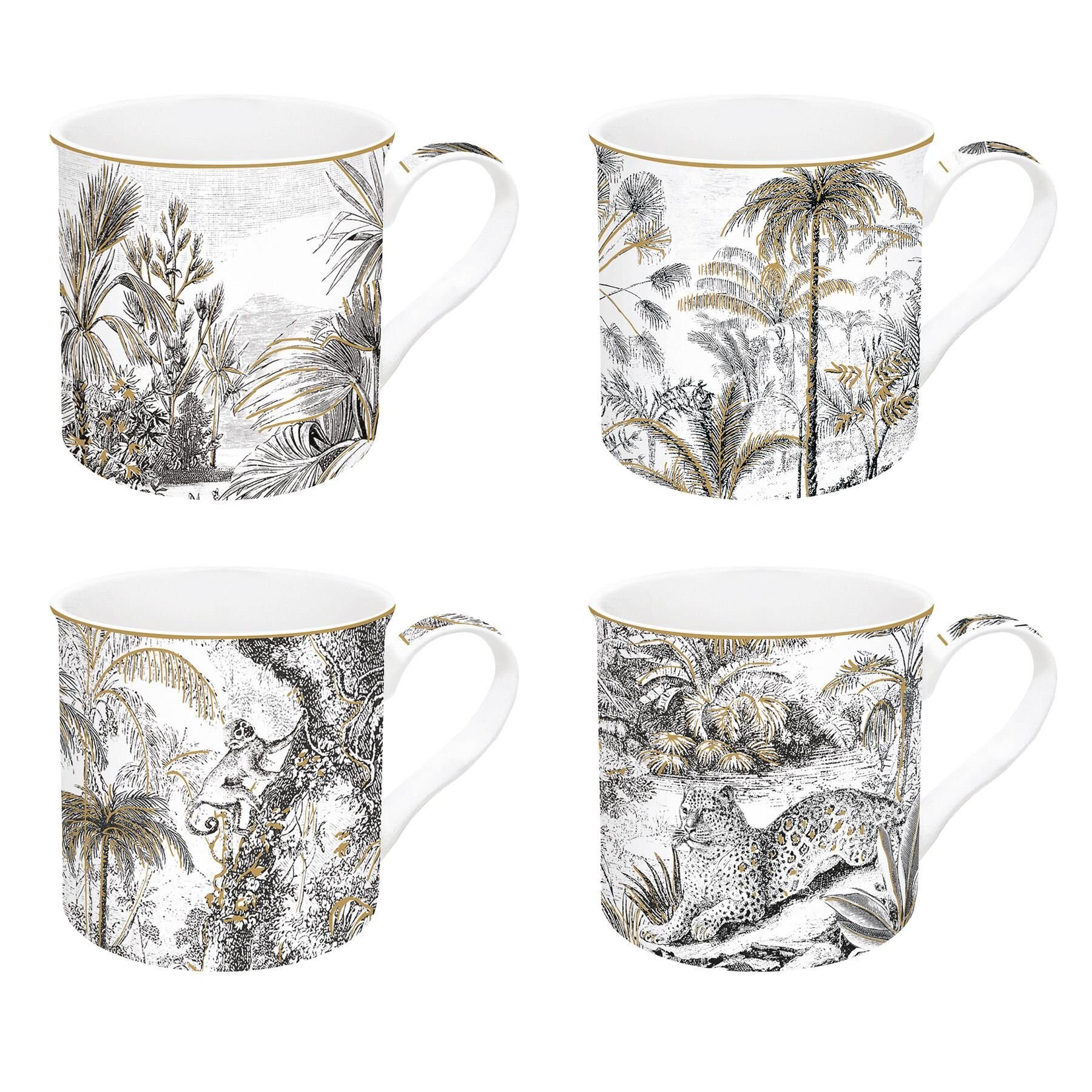Easy Life Retro Jungle Fine China Porselen 4'lü Kulplu Bardak 300 ml