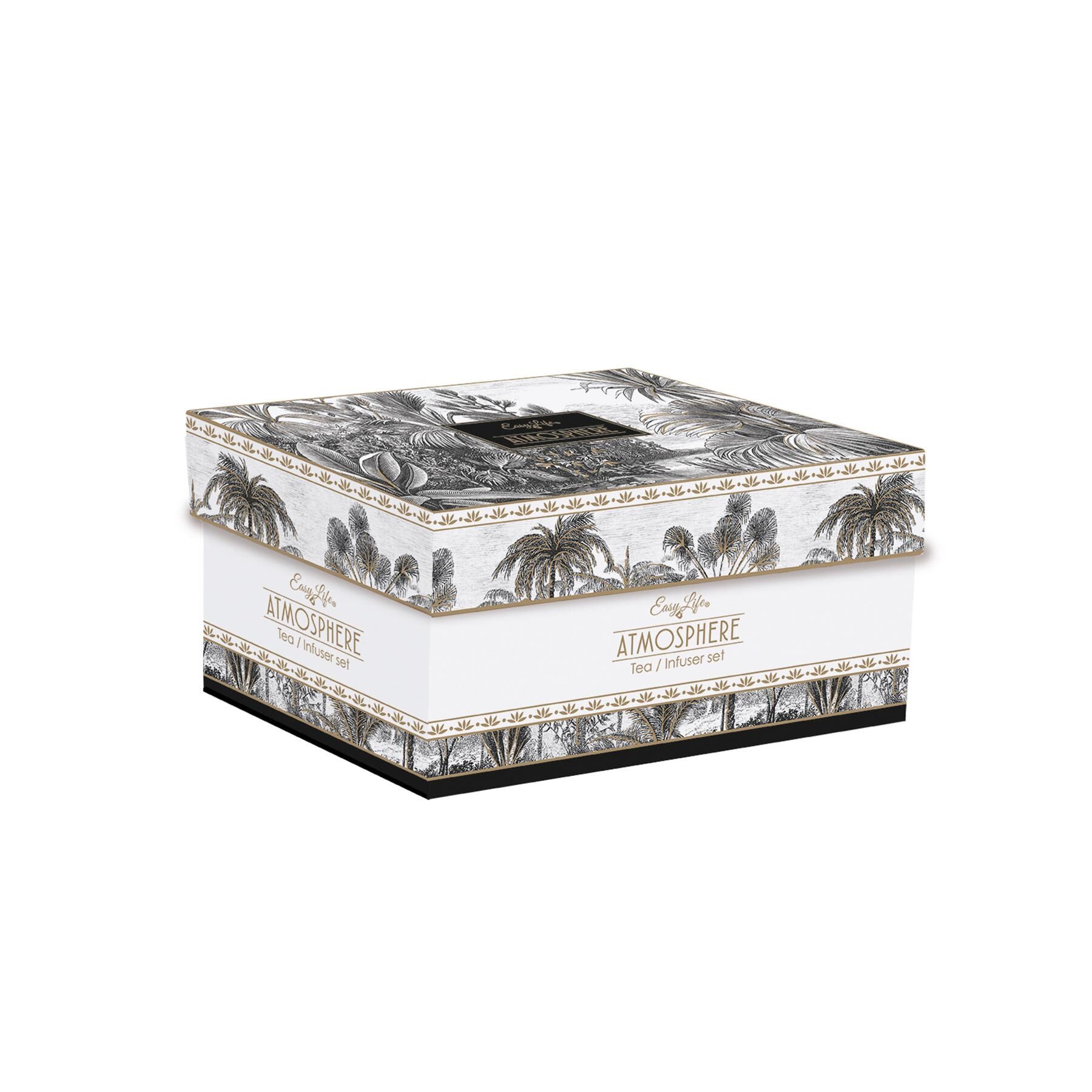 Easy Life Retro Jungle Porselen Çaydanlık 600 ml Metal Demlikli ve 2 Fincanlı 160ml