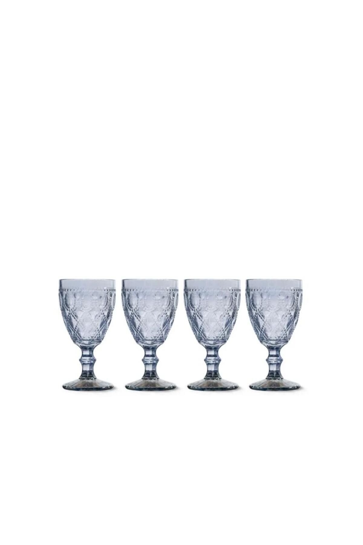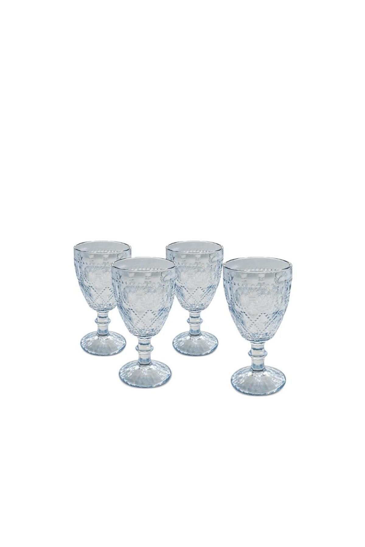 Easy Life Rölyef Süslemeli 4 lü Cam Kadeh Seti Mavi - 400 ml