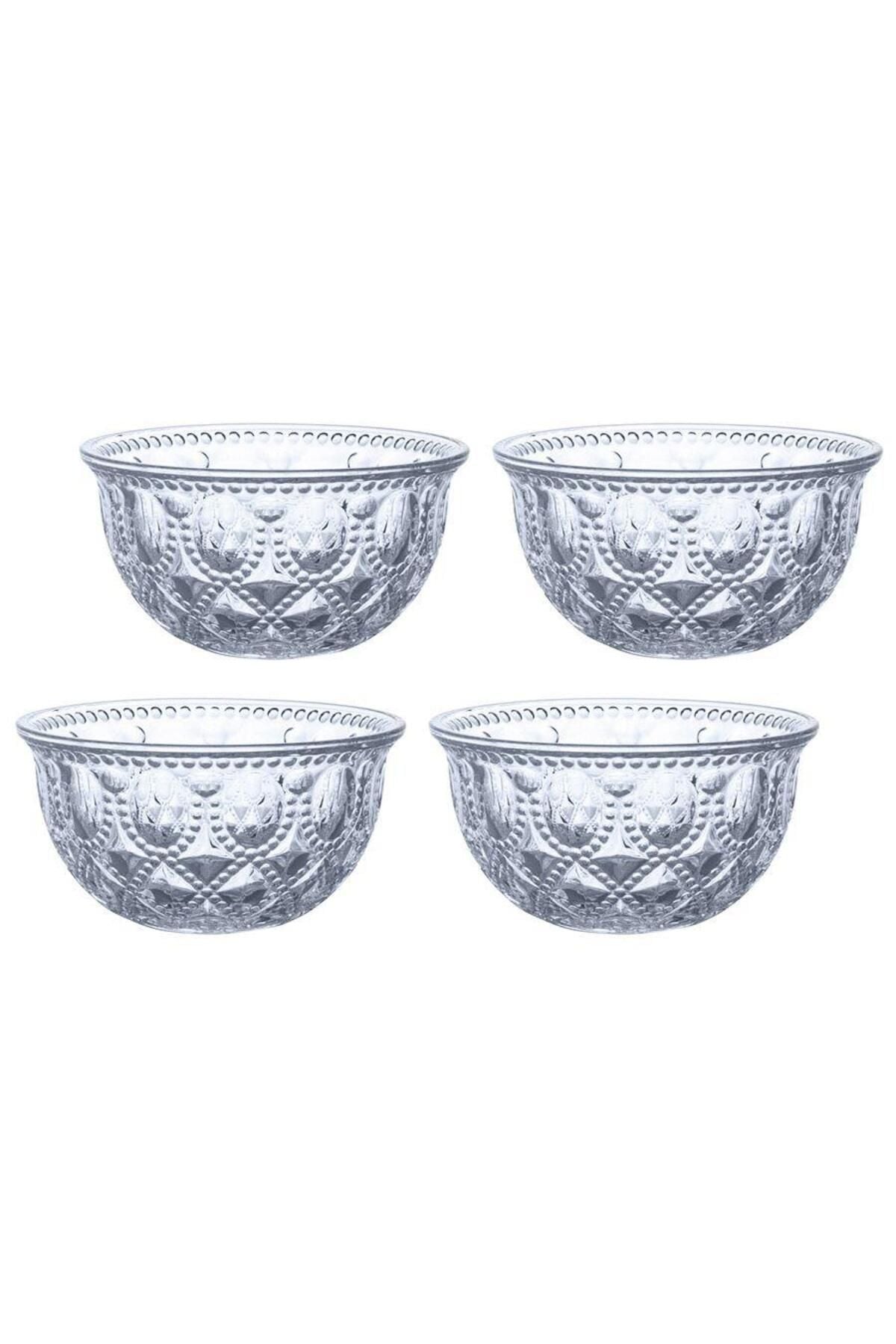 Easy Life Rölyef Süslemeli 4 lü Cam Kase Seti Mavi 400 ml 12.7cm - h 6.6cm