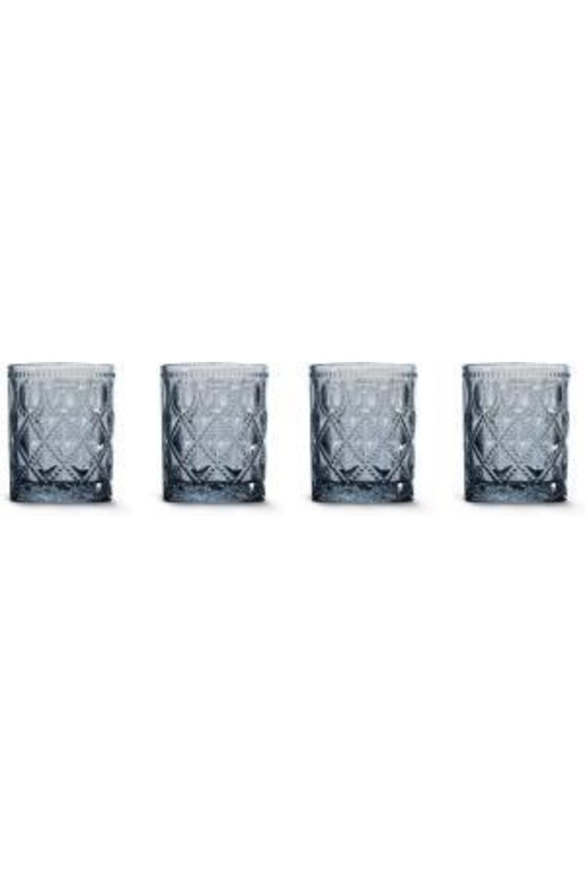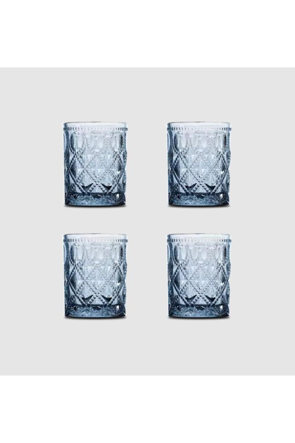 Easy Life Rölyef Süslemeli 4 lü Cam Su Bardağı Seti Mavi - 300ml