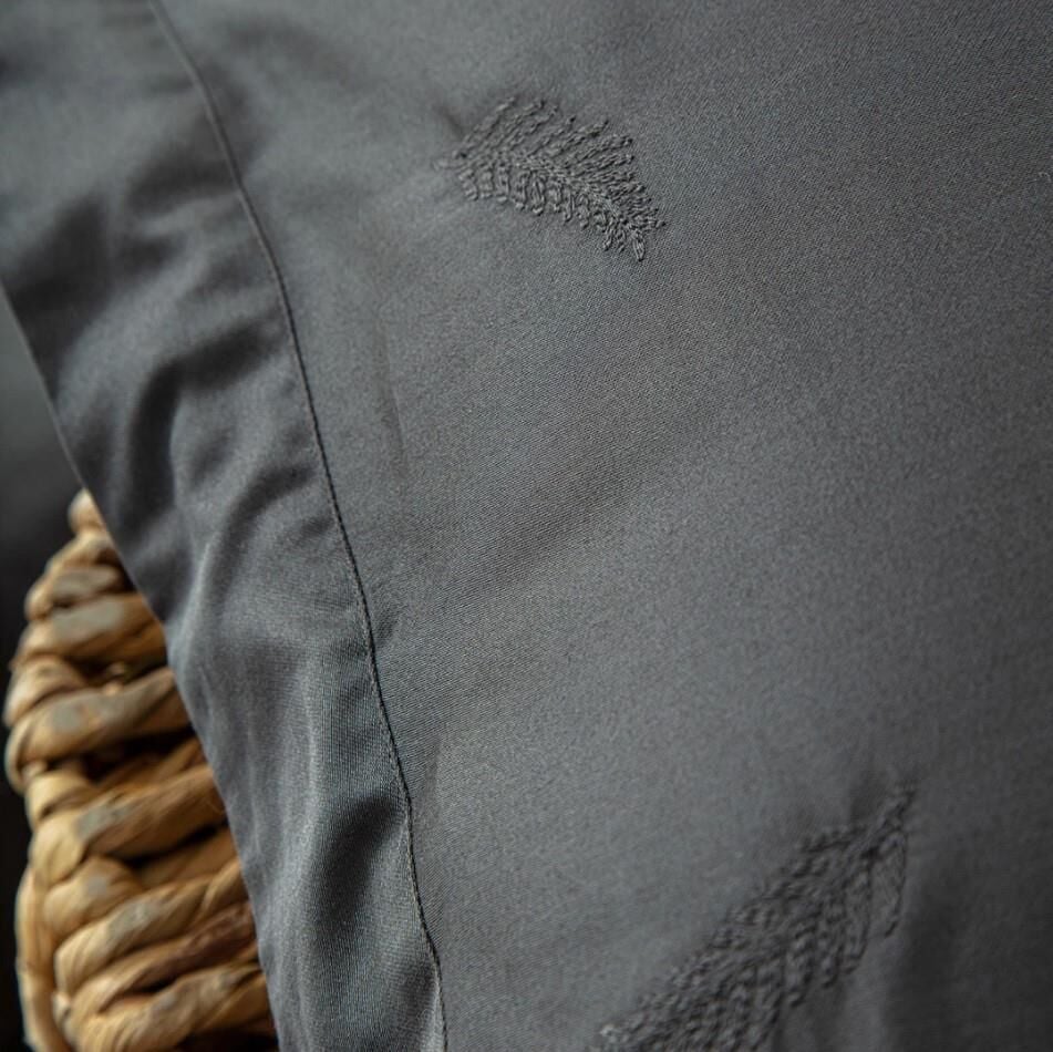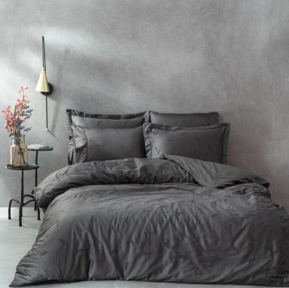 Ecocotton Güz Çift Kişilik Nevresim Takımı %100 Organik Pamuk Saten Brodeli Antrasit CK