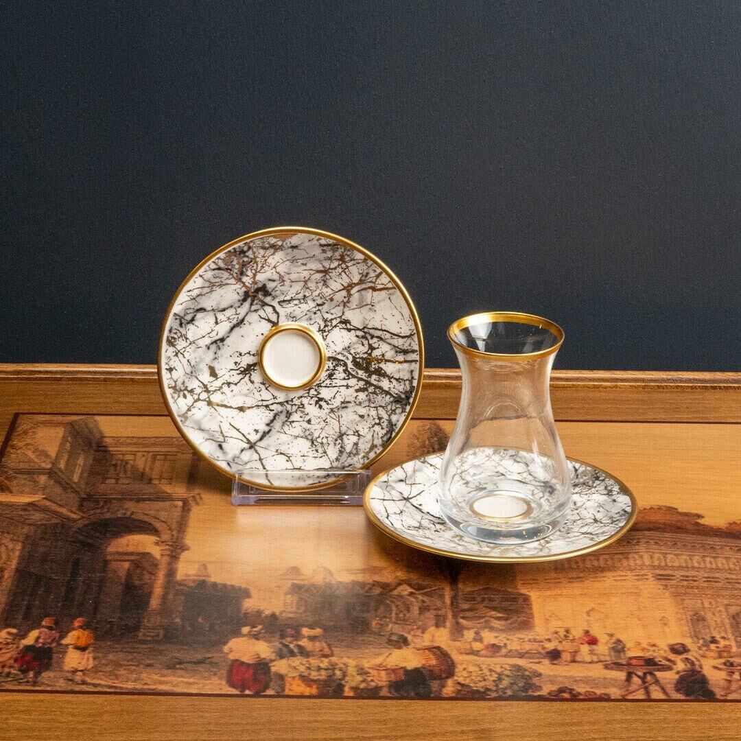 Canba Glazze İmperial Beyaz Ala 12 Parça Çay Seti
