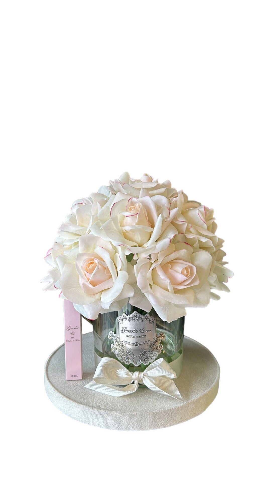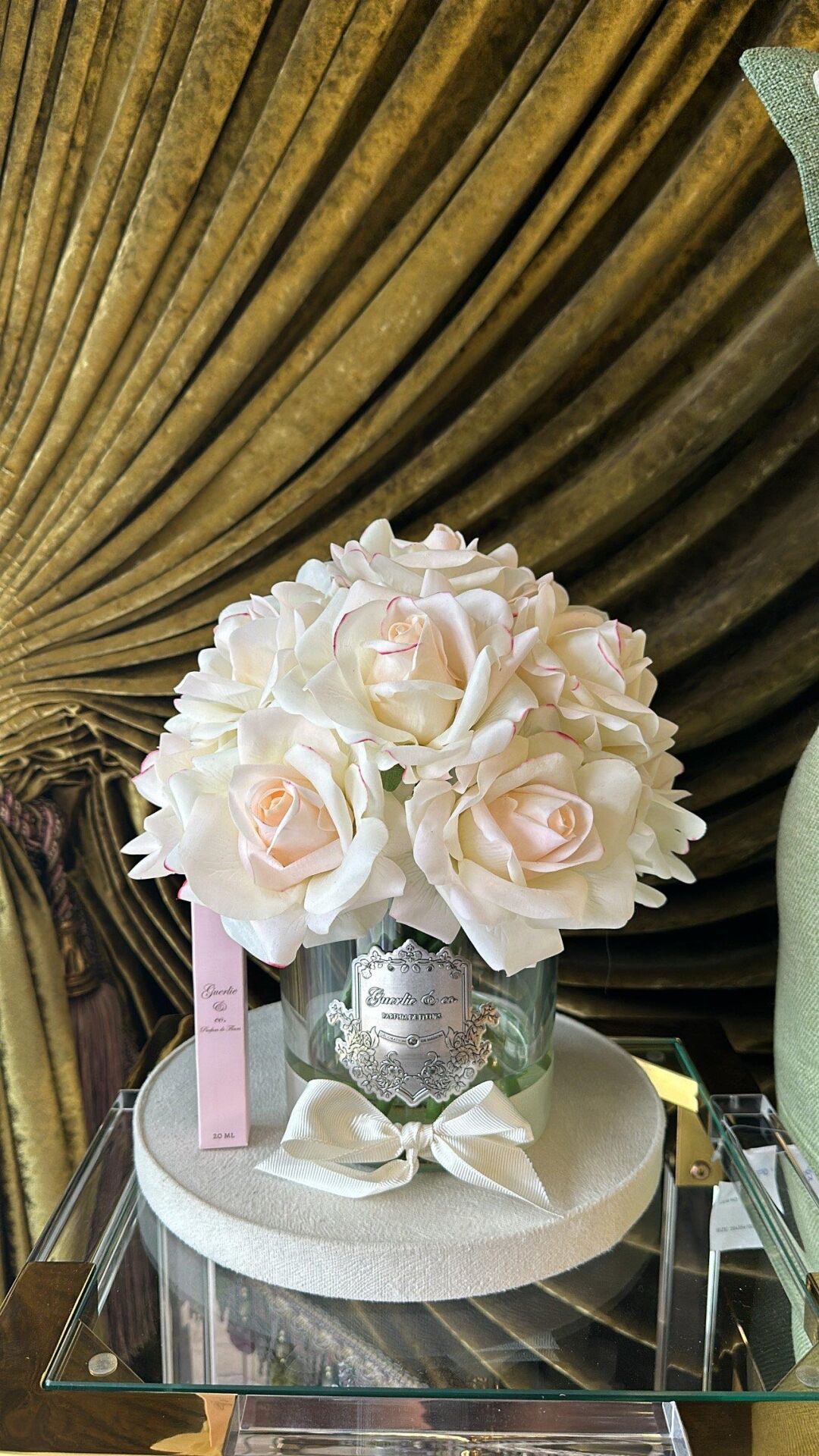 Guerlie&Co’nun zarif dokunuşlarla tasarlanmış 13 Güllü Krem Pembe Geçişli Şeffaf Cam ürünü, şıklığı yepyeni bir seviyeye taşıyor! Bu özel parça, her detayıyla göz kamaştıran bir tasarım sunuyor. Kendinizi veya sevdiklerinizi şımartmak için harika bir fırsat!
