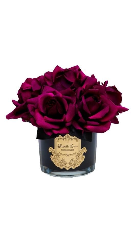 Zarif Tasarım: Şık siyah cam vazosu ve altın logosu ile göz alıcı bir görünüm.