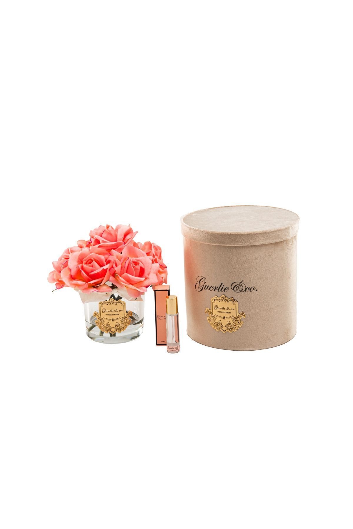 Guerlie&Co 7 Güllü Şeftali Şeffaf Gold Cam, sofistike tarzı ve zarif detaylarıyla yaşam alanınıza ışıltı katacak eşsiz bir dekor ürünü. Tasarımındaki şeffaf cam, altın dokunuşlar ve şeftali tonları, zarafet ve sıcaklık hissini bir araya getirerek evinizde veya ofisinizde mükemmel bir görsel şölen sunar.