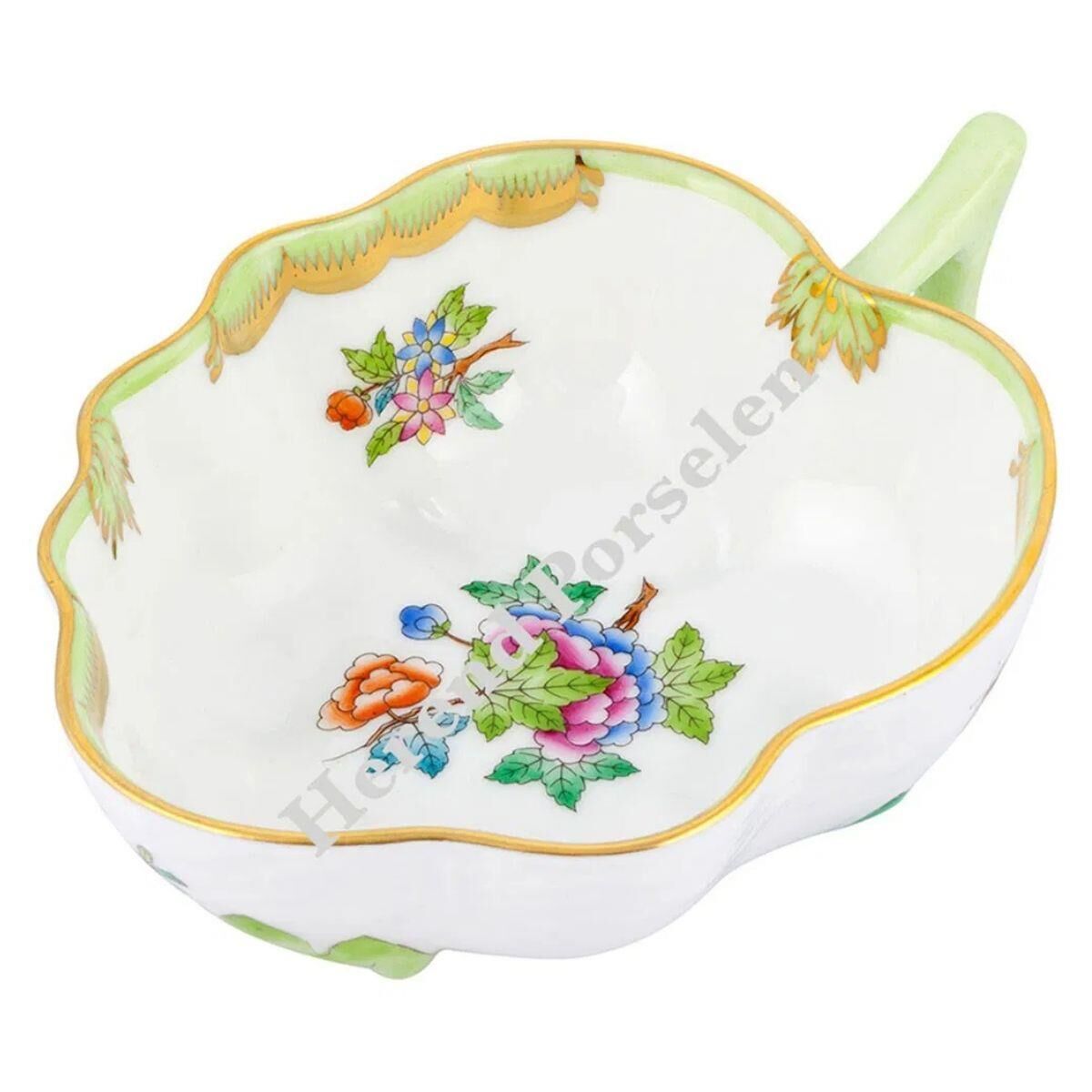 Çerezlik-yaprak kase, VICTORIA desen, birbirinden özel dekor ve desenlere sahip el boyaması Herend Porselen koleksiyonu ile sofralarınızı ve evinizi zenginleştirin. Bu yaprak kase hem çerezlik, reçellik, zeytinlik, olarak hem de evinizde dekoratif amaçla kullanıma uygundur. Ürünü diğer Herend aksesuarlarla tamamlayabilir, kahvaltı sofraları ve takımı oluşturabilirsiniz. Bu parça ile takımlayabileceğiniz bölmeli servisler, bardak altlıkları, çukur servisler, servis tepsileri, çay fincanları, kahve fincanları ve Herend desenli peçeteler sunumlarınıza zenginlik katacaktır.