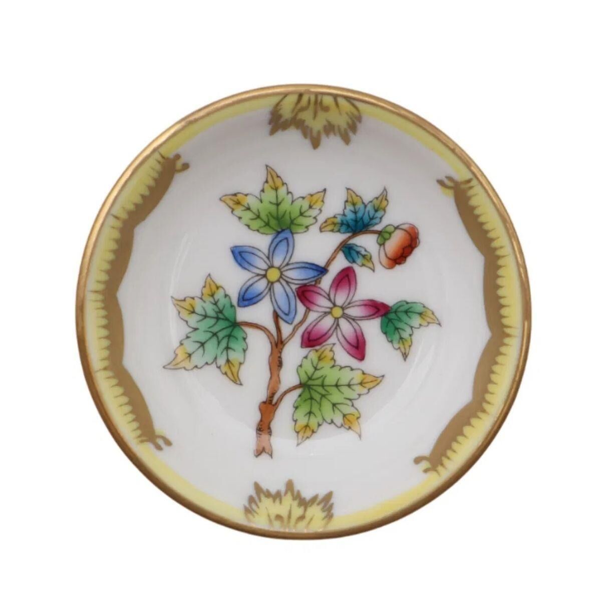 Minik tabak, VICTORIA desen, birbirinden özel dekor ve desenlere sahip el boyaması Herend Porselen koleksiyonu ile sofralarınızı zenginleştirin. Bu minik çikolata, lokum tabaklarınızı, kahve ve çay servisinizde kullanabilirsiniz. Kahve yanına verilen bir lokum yada çay yanında bir kurabiye gibi porsiyonluk ikramlarla misafirlerinizi şaşırtın. Küçük tabağınızı takımlayabileceğiniz çay ve kahve fincanları küçük tepsiler, bölmeli servisler, katlı servisler, bardak altlıkları, çukur servisler, servis tepsileri, Herend desenli peçeteler, kaseler sunumlarınıza zenginlik katacaktır.