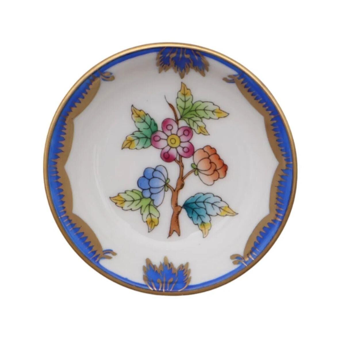 Minik tabak, VICTORIA desen, birbirinden özel dekor ve desenlere sahip el boyaması Herend Porselen koleksiyonu ile sofralarınızı zenginleştirin. Bu minik çikolata, lokum tabaklarınızı, kahve ve çay servisinizde kullanabilirsiniz. Kahve yanına verilen bir lokum yada çay yanında bir kurabiye gibi porsiyonluk ikramlarla misafirlerinizi şaşırtın. Küçük tabağınızı takımlayabileceğiniz çay ve kahve fincanları küçük tepsiler, bölmeli servisler, katlı servisler, bardak altlıkları, çukur servisler, servis tepsileri, Herend desenli peçeteler, kaseler sunumlarınıza zenginlik katacaktır.
