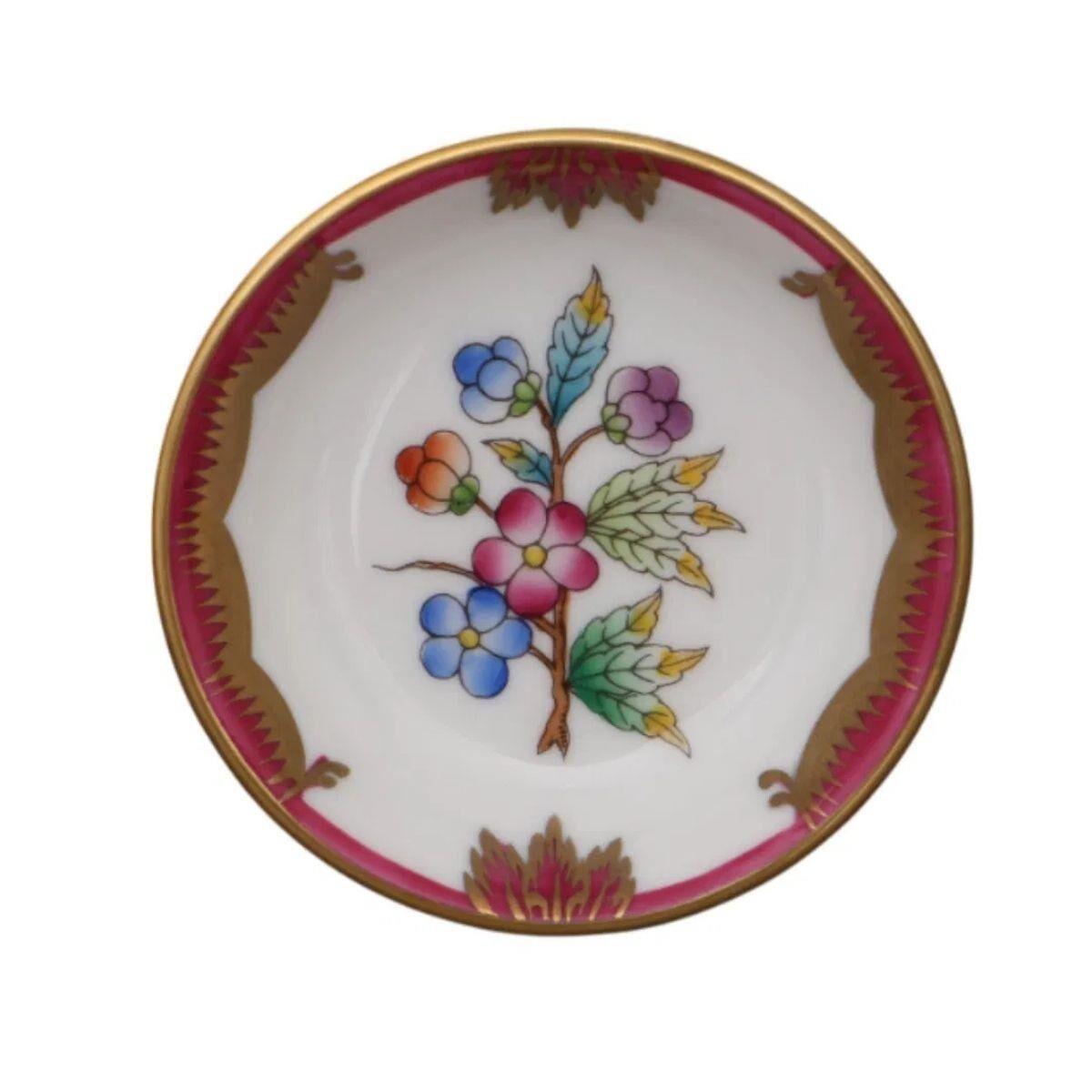 Minik tabak, VICTORIA desen, birbirinden özel dekor ve desenlere sahip el boyaması Herend Porselen koleksiyonu ile sofralarınızı zenginleştirin. Bu minik çikolata, lokum tabaklarınızı, kahve ve çay servisinizde kullanabilirsiniz. Kahve yanına verilen bir lokum yada çay yanında bir kurabiye gibi porsiyonluk ikramlarla misafirlerinizi şaşırtın. Küçük tabağınızı takımlayabileceğiniz çay ve kahve fincanları küçük tepsiler, bölmeli servisler, katlı servisler, bardak altlıkları, çukur servisler, servis tepsileri, Herend desenli peçeteler, kaseler sunumlarınıza zenginlik katacaktır.