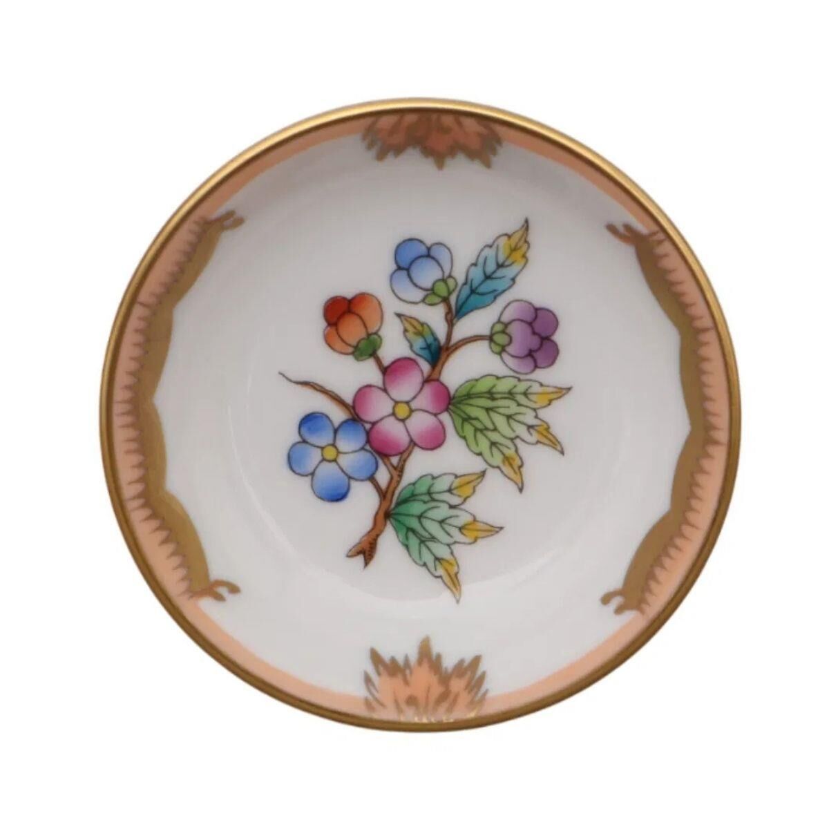Minik tabak, VICTORIA desen, birbirinden özel dekor ve desenlere sahip el boyaması Herend Porselen koleksiyonu ile sofralarınızı zenginleştirin. Bu minik çikolata, lokum tabaklarınızı, kahve ve çay servisinizde kullanabilirsiniz. Kahve yanına verilen bir lokum yada çay yanında bir kurabiye gibi porsiyonluk ikramlarla misafirlerinizi şaşırtın. Küçük tabağınızı takımlayabileceğiniz çay ve kahve fincanları küçük tepsiler, bölmeli servisler, katlı servisler, bardak altlıkları, çukur servisler, servis tepsileri, Herend desenli peçeteler, kaseler sunumlarınıza zenginlik katacaktır.