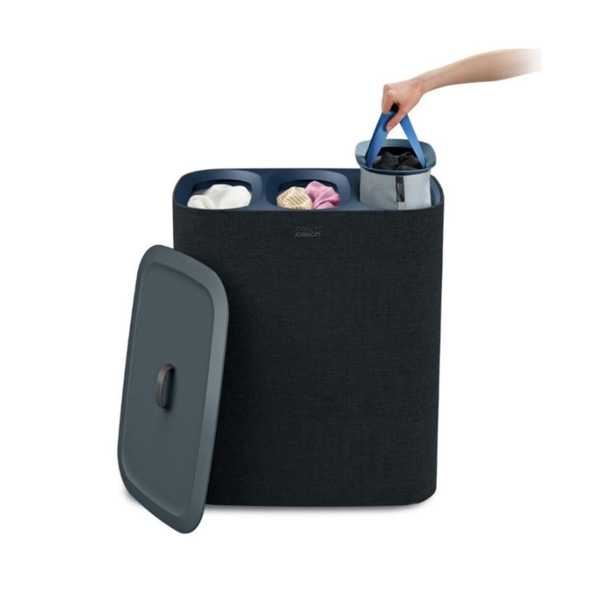 Joseph Joseph Tota 90 L Trio 3 Bölmeli Çamaşır Ayırma Sepeti-Siyah