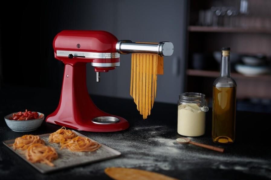 Kitchenaid Stand mikseri ile uyumlu makarna aparatlarını çok amaçlı bağlantı göbeğine takmanız yeterlidir.