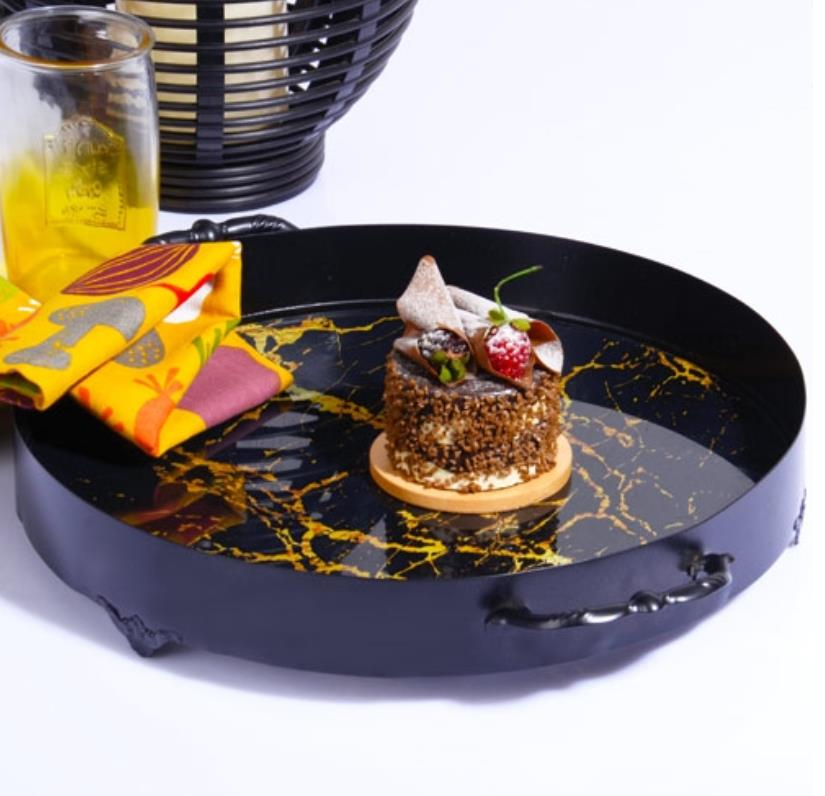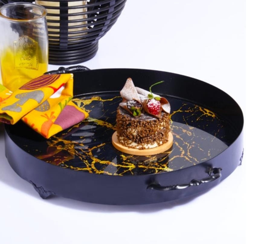 Kosova 1994-07 Yuvarlak Siyah Sarı Tepsi 35 cm, modern ve şık tasarımıyla her sofraya zarafet katacak mükemmel bir üründür. Siyahın asaletini ve sarının enerjisini bir araya getiren bu tepsi, zarif görünümünün yanı sıra kullanım kolaylığıyla da öne çıkar. Geniş yüzeyi sayesinde içecek, atıştırmalık ve diğer ikramlarınızı rahatça sunabilirsiniz.