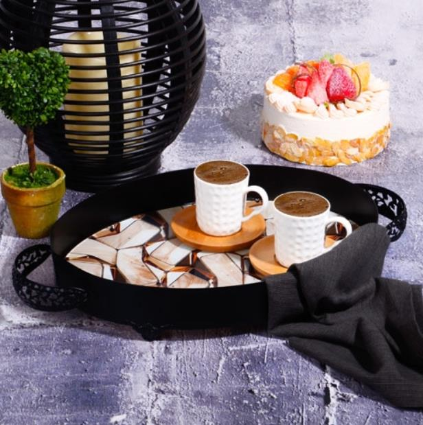 Kosova 1994-52 Orta Siyah Oval Açık Kahve Tepsi 35 cm, şık tasarımı ve sofistike renk kombinasyonu ile her ortamda dikkat çeker. Siyahın zarafeti ve açık kahvenin sıcak tonları, tepsiyi modern ve şık bir kullanım aracı haline getirir. Hem günlük kullanımlarda hem de özel davetlerde yemeklerinizi veya içeceklerinizi zarif bir şekilde sunmak için mükemmel bir seçenektir.