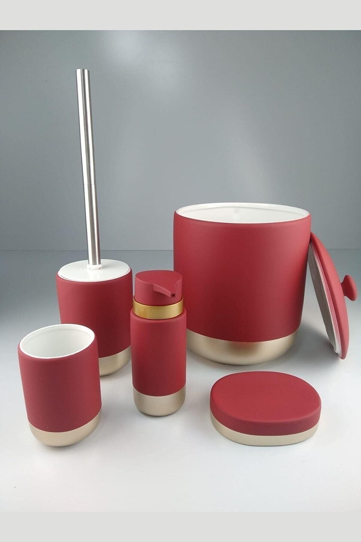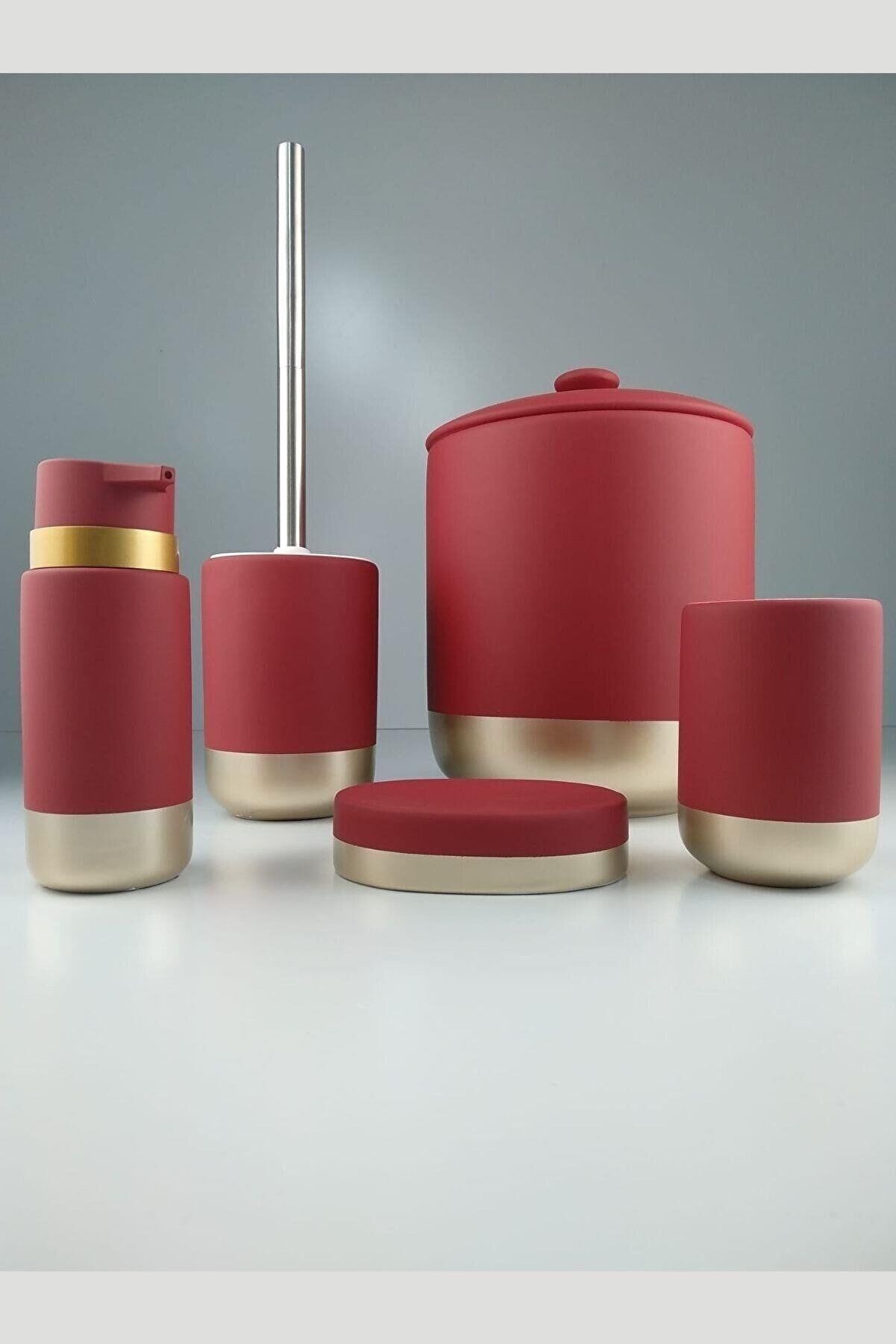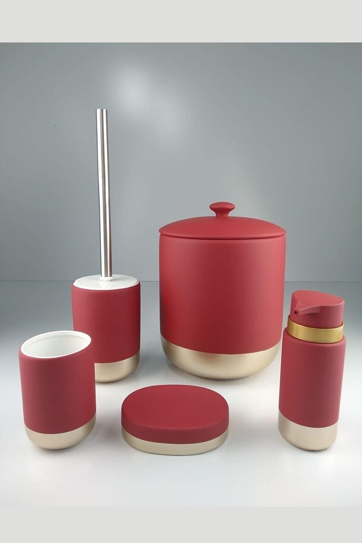 Kosova BNY-310 Seramik 5 Parça Banyo Set Mat Kırmızı Gold