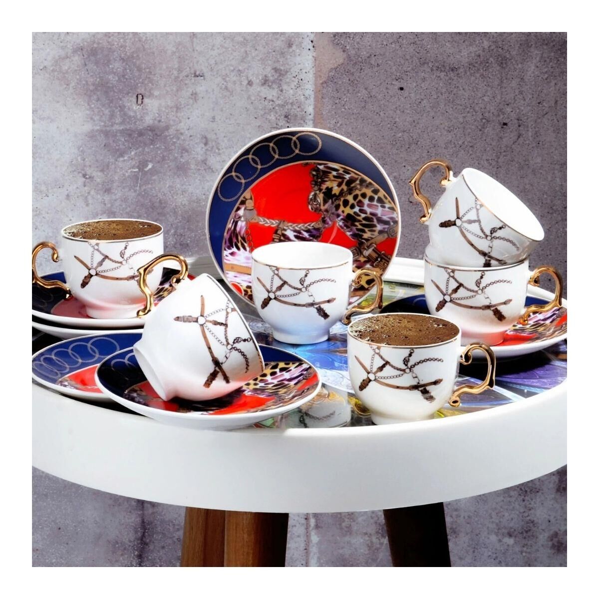 Kosova Byz-034 New Bone 100cc 4'lü Kahve Fincan Takımı Leopar