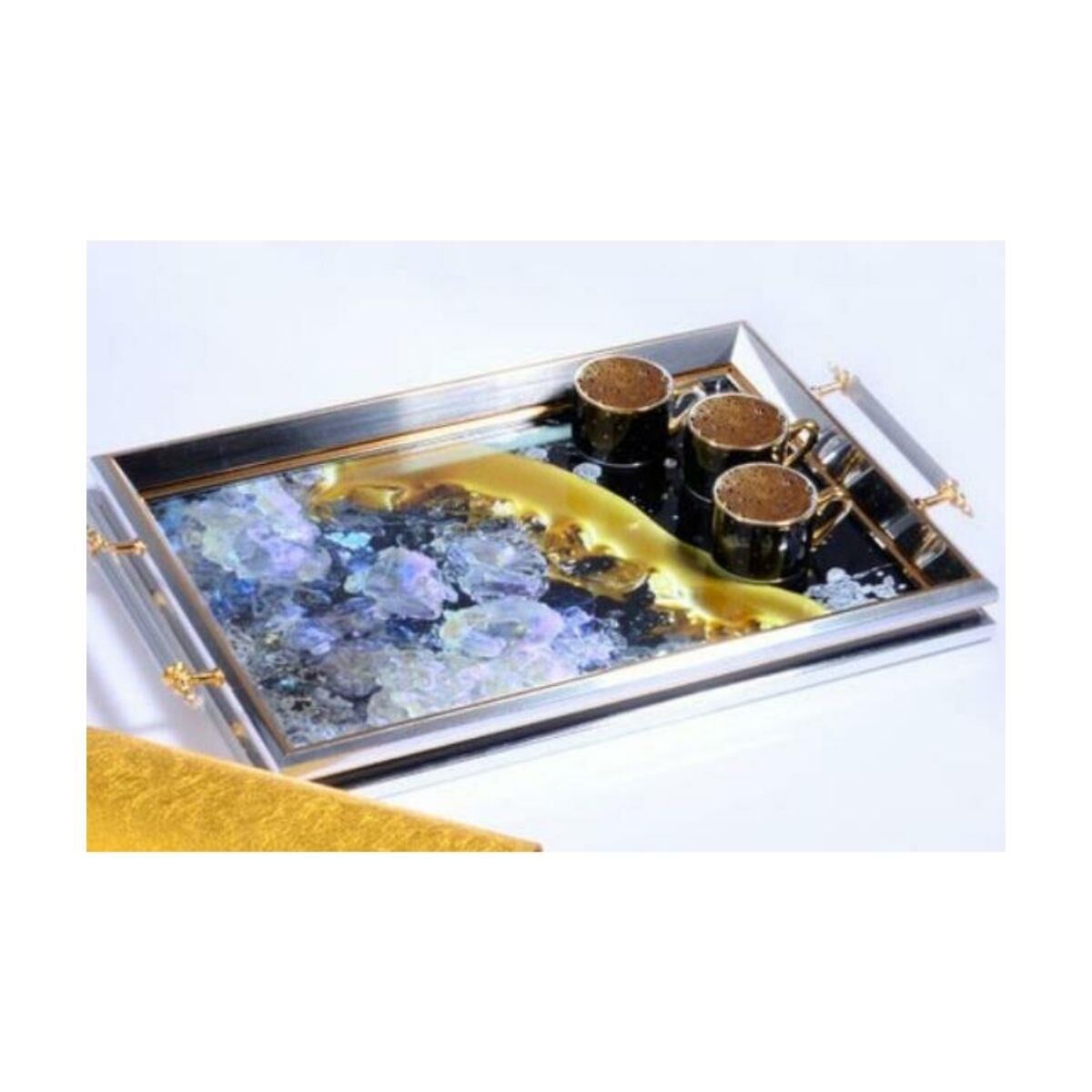 Şık Tasarım: Gümüş ve altın renklerin mükemmel uyumu, tepsiyi bir sanat eserine dönüştürüyor.