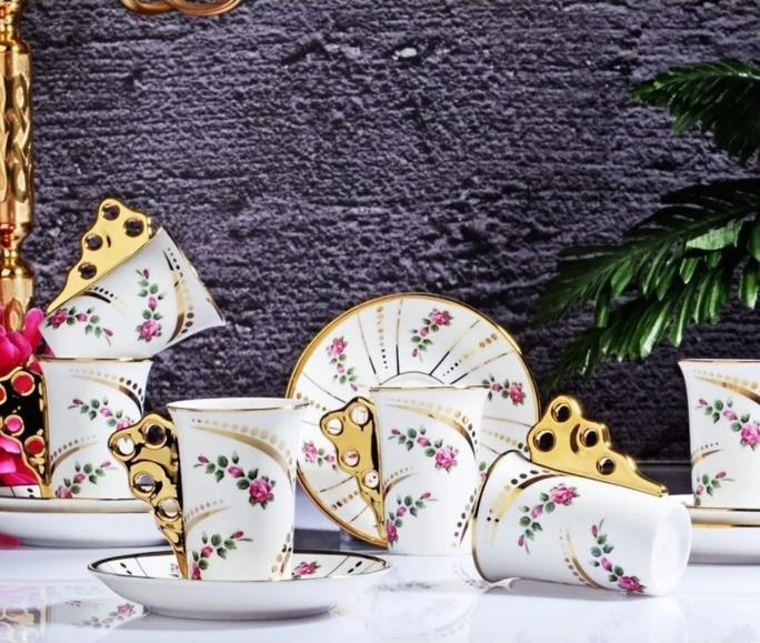 Kosova İst-143 Porselen 90 cc 6'lı Uzun Fincan Takımı Rose Flower