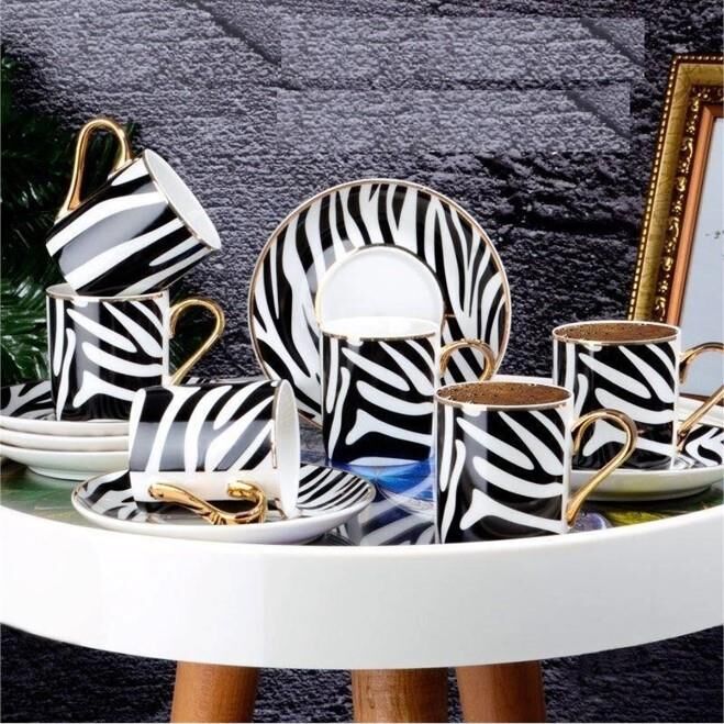 Kosova Kgp-094 Porselen 6'lı Kahve Fincan Takımı Black White