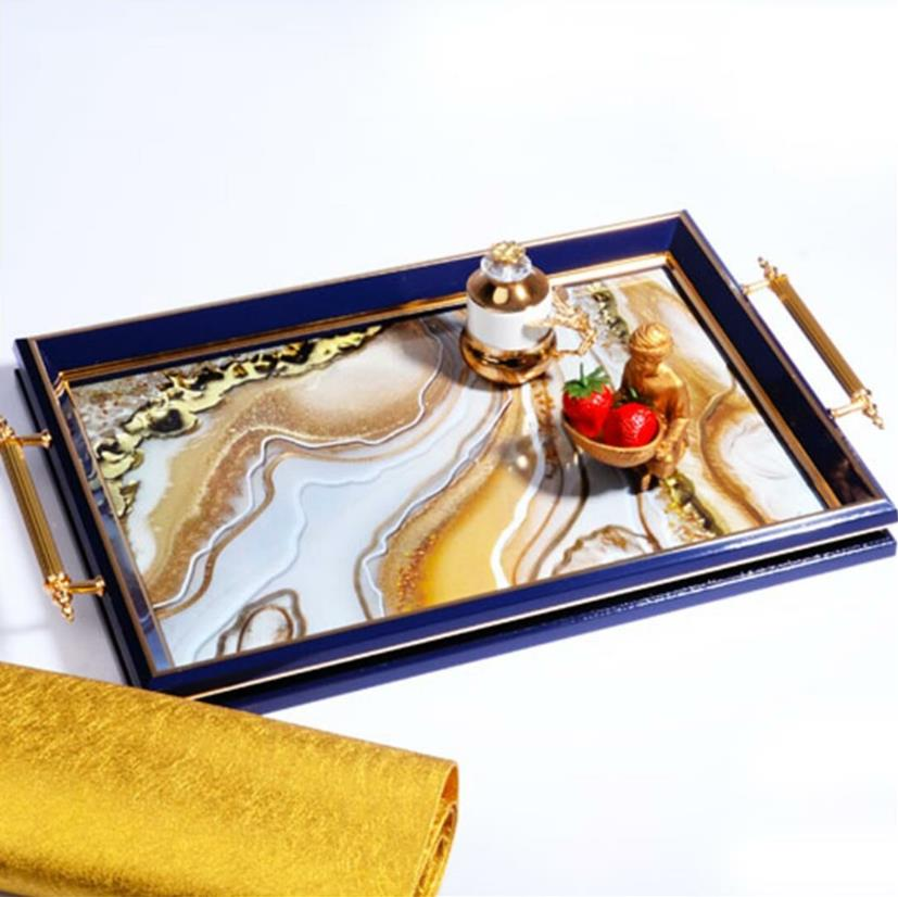 Kosova La-212 Kulplu Lüx Dikdörtgen Tepsi 50 x 31 Cm Lacivert