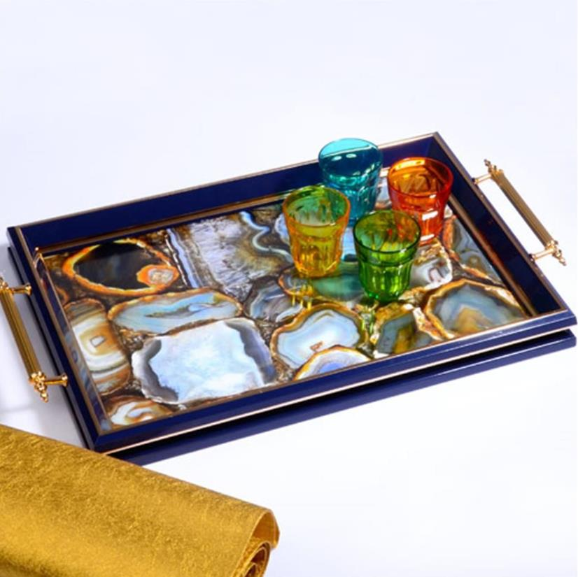 Kosova La-228 Kulplu Lüx Dikdötgen Tepsi 50 x 31 Lacivert