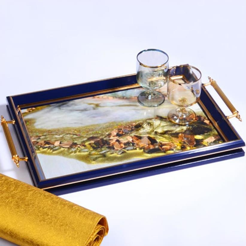 Kosova La-229 Kulp Lüx Dikdörtgen Tepsi 50 x 31 Lacivert
