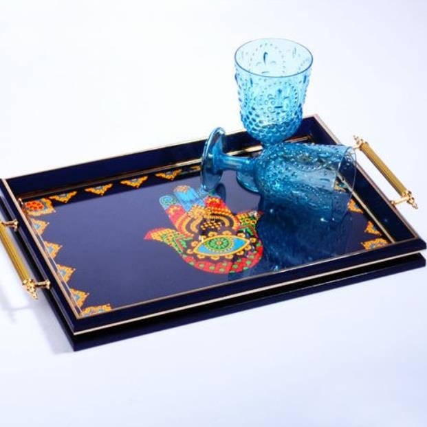 Kosova La-253 Kulplu Lüx Dildörtgen Tepsi Lacivert