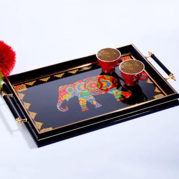Kosova SA-257 Kulplu Lüx Dikdörtgen Tepsi Siyah Fil
