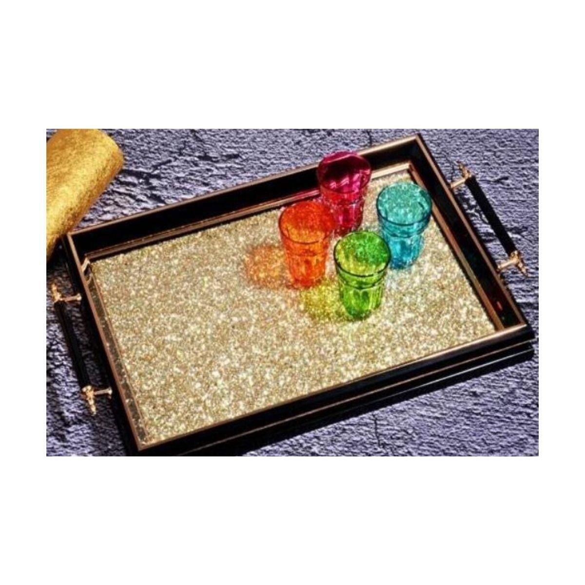 Kosova Sa-587 Kulplu Taşlı Dikdörtgen Tepsi 50 X 31 Siyah Altın