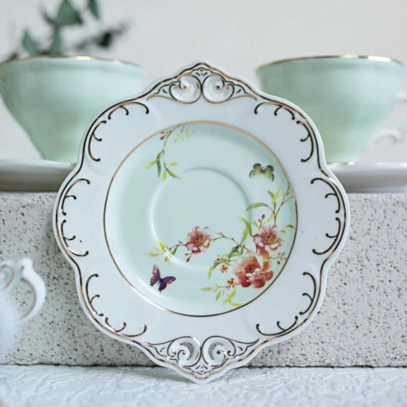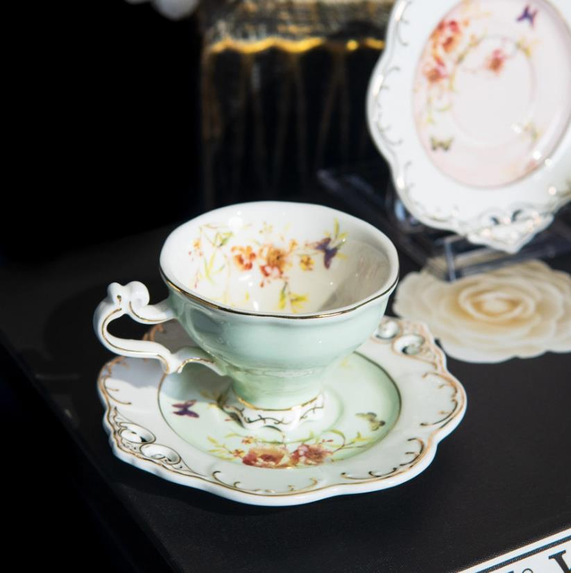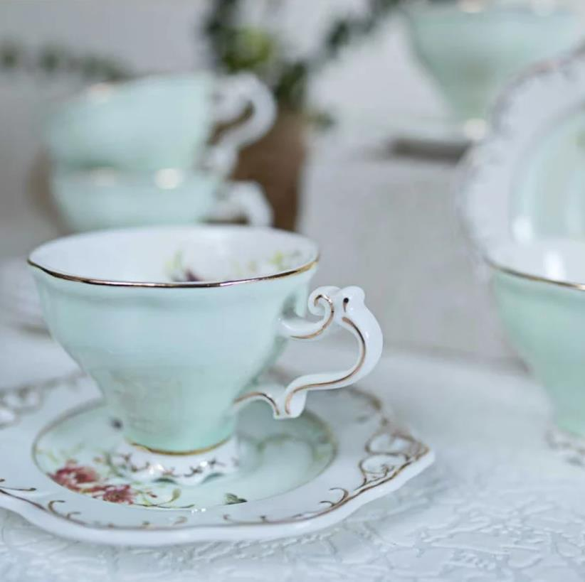 Kosova Zjn-02 Porselen 6'lı Fincan Takımı Ayaklı Flower Yeşil