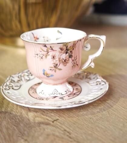 Kosova Zjn-07 Porselen 6'lı Fincan Takımı Ayaklı Flower Pembe