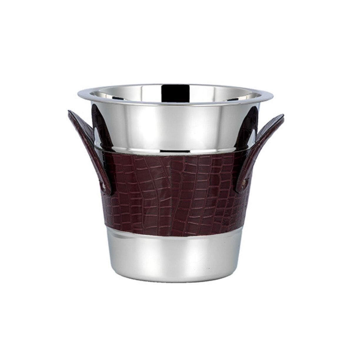 La Medore Brown Croco Leather Wıne Cooler 22, 5x22, 5x21 Cm