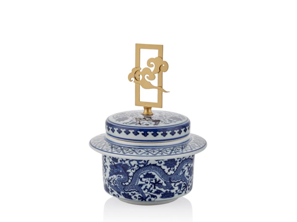 Lamedore Asia Bleu Blanc Yazılı Küçük Küp 19 x 19 x 24.5 Cm