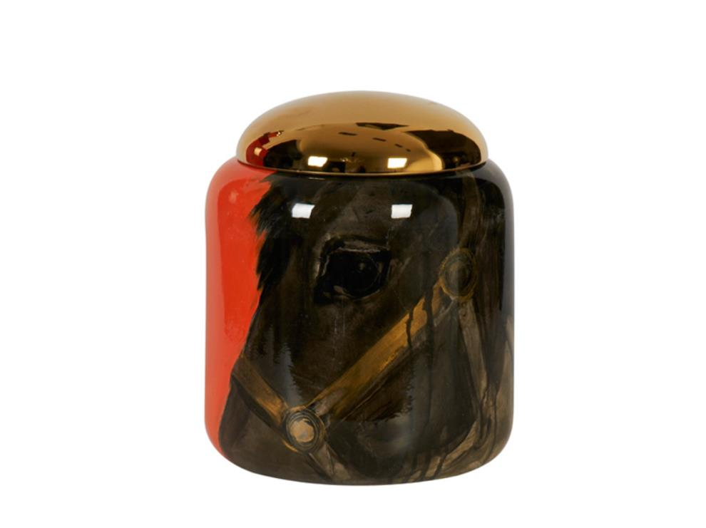 Lamedore At Desenli Kırmızı Renk Kapaklı Küçük Boy Vazo 21,5x25 Cm