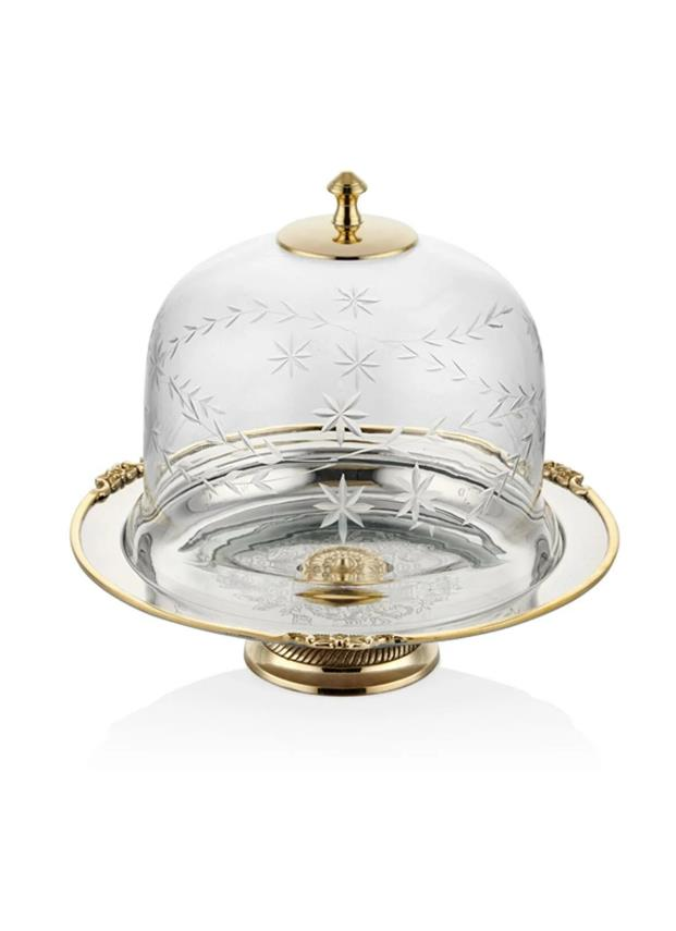 Lamedore Black Pearl Sade Küçük Boy Cam Kapaklı Kek Standı 24 x 24 x 21 Cm
