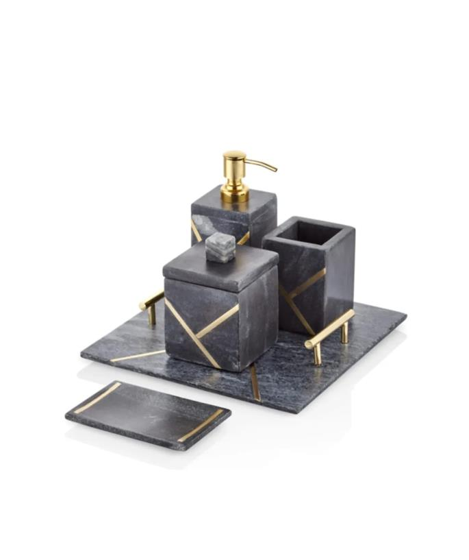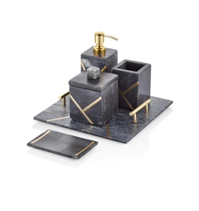 Lamedore Blank Siyah Gold Saplı Kare Tepsili Banyo Takımı
