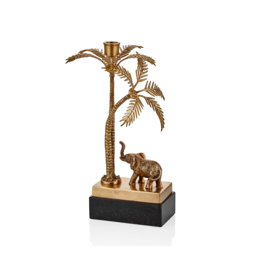 Lamedore Fil Detaylı Palmiye Ağacı Brass Mumluk 19 x 18 x 34 Cm