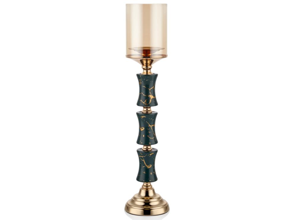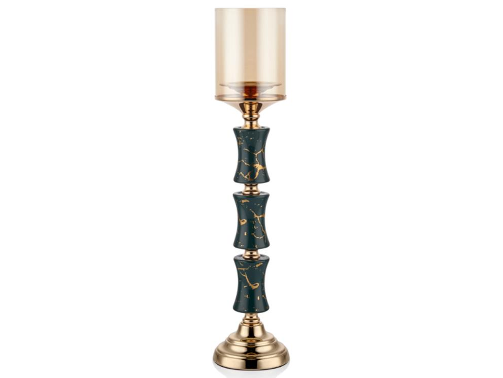 Lamedore Gold Fertile Gövdesi Green Silindir Boğumlu Büyük Boy Mumluk 12 x 12 x 50 Cm