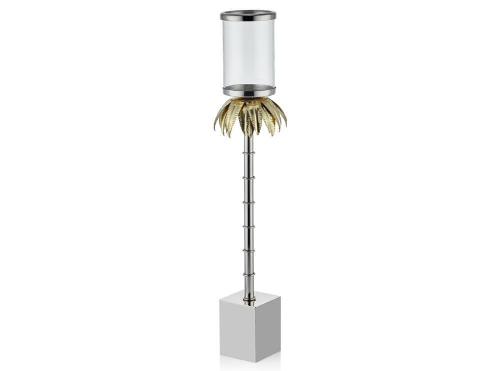 Lamedore Palmiye Gümüş Gold Büyük Mumluk 68 Cm
