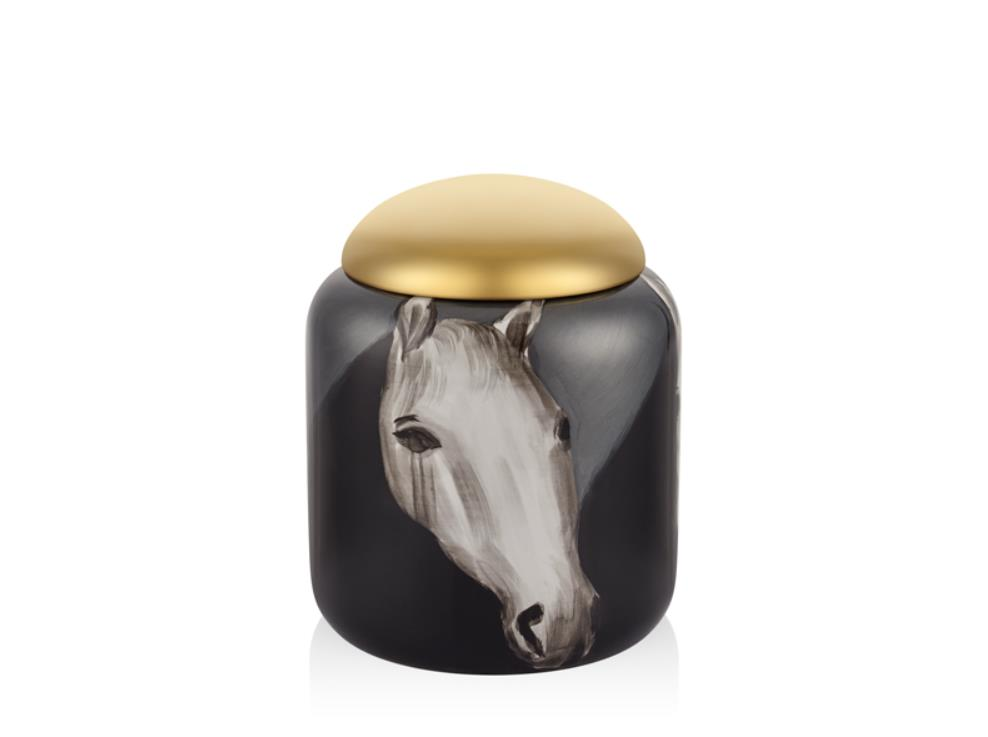 Lamedore Siyah Beyaz At Desenli Kapaklı Vazo Küçük Boy 21,5 x 25 Cm