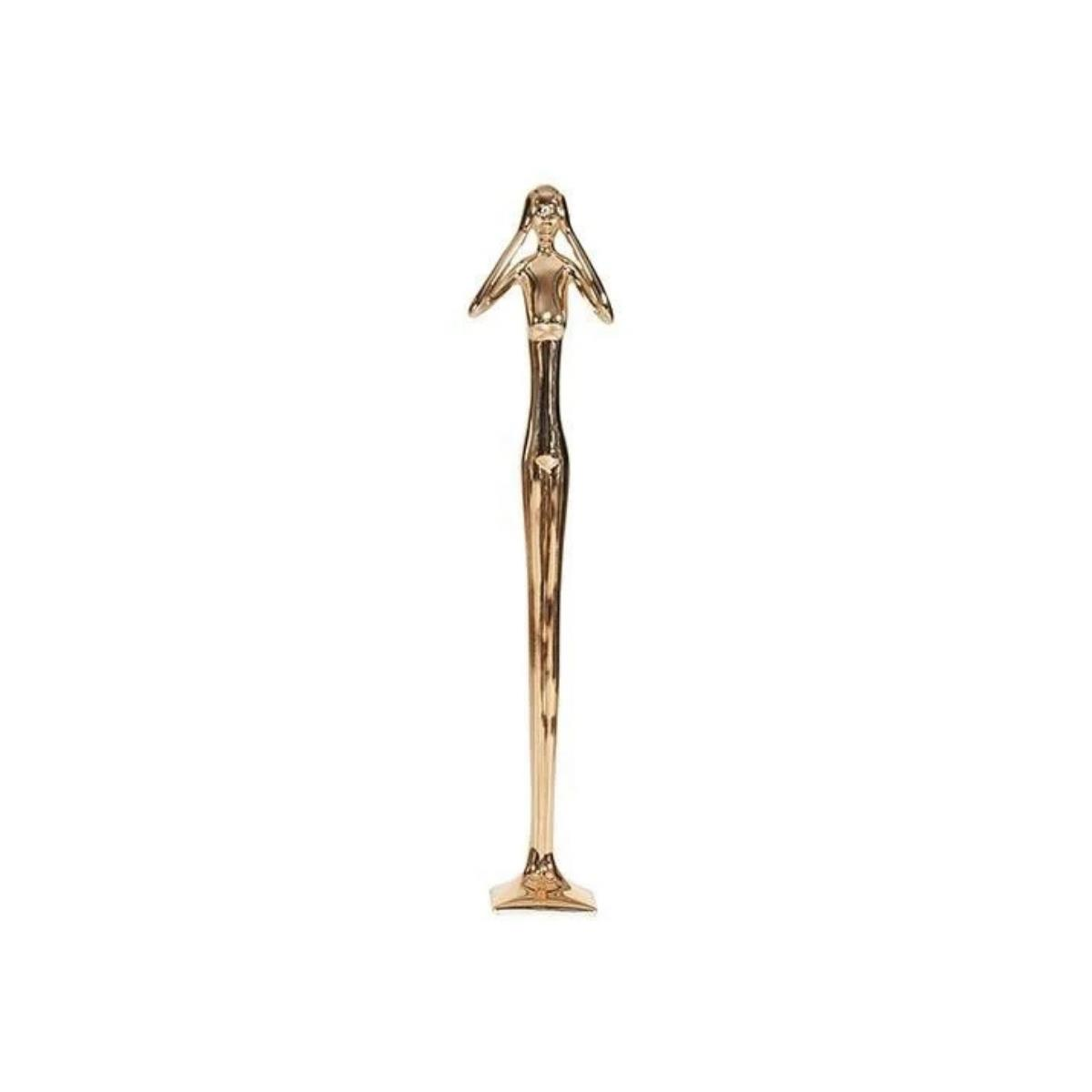 Bu etkileyici biblo, duymadım pozu ile zarafeti ve özgünlüğü bir araya getiriyor. Altın kaplama detayı ve 14x10x73 cm ölçüleriyle göz alıcı bir şıklığa sahip olan bu sanat eseri, evinizin dekorasyonunda fark yaratacak. Geleneksel ve modern çizgilerin buluştuğu bu tasarım, herhangi bir odanın odak noktası olabilir. Üstelik samimi ve sıcak bir hava katmak istediğiniz her alanda kullanabilirsiniz.