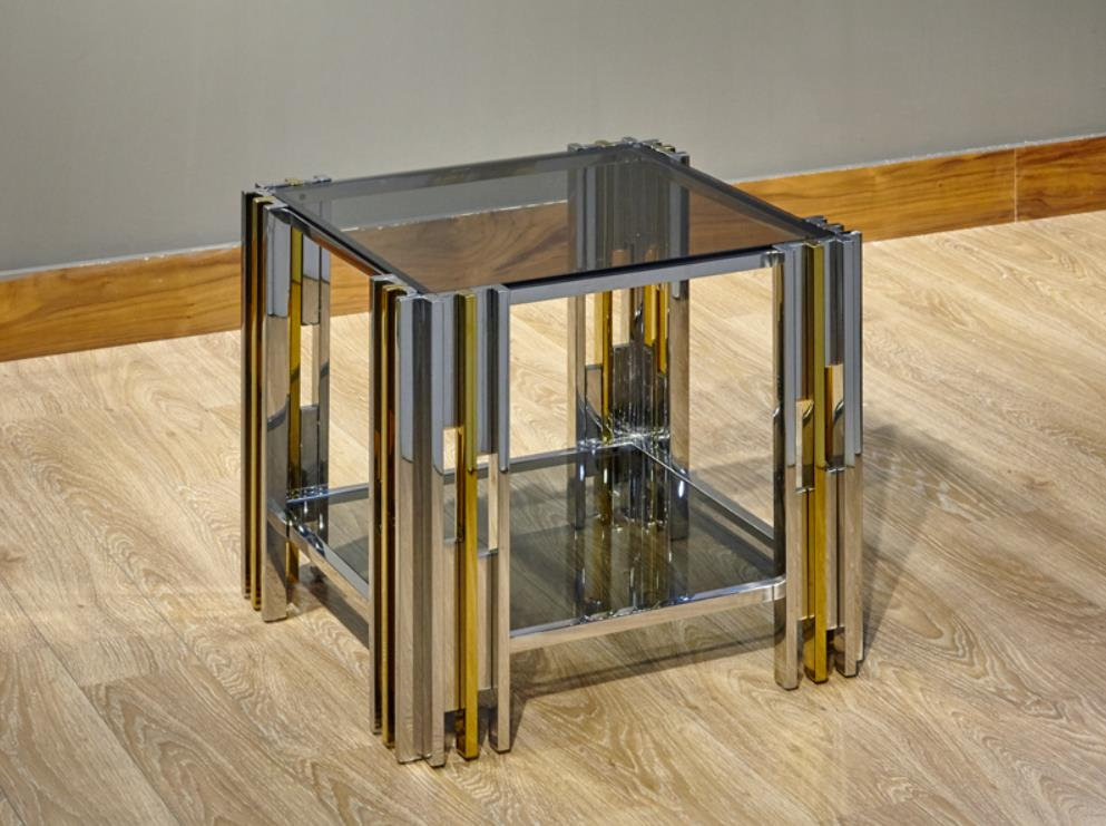 Lamedore Waller Yan Sehpa Silver Gold Çift Camlı 50 x 53 Cm