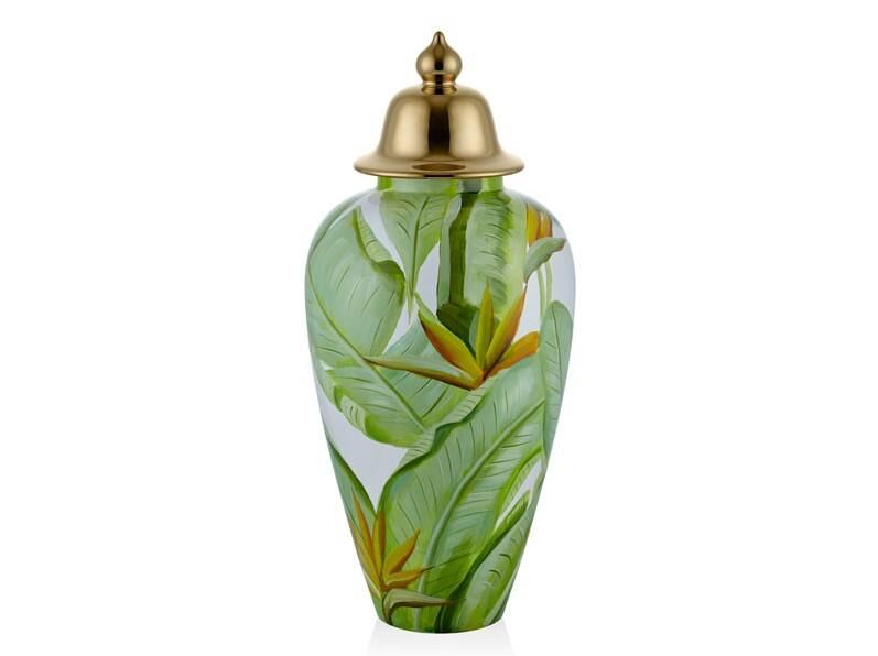 Lamedore Yeşil Yaprak Desenli Kapaklı Kup Büyük Boy30x65 cm